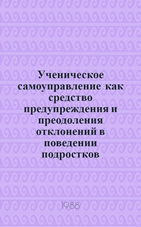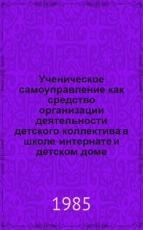 Дик Н. Ф. Ученическое самоуправление в общеобразовательном учреждении : книга современного руководителя : типовые положения, нормативно-правовое регулирование, модели ученического самоуправления, региональный опыт ученического самоуправления / Н.Ф. Дик. - Ростов-на-Дону : Феникс, 2006. - 281 с. ; 21 см. - (Административное управление образованием). - Библиогр.: с. 272-274