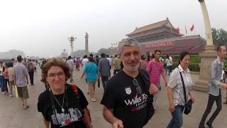 caminando en la puerta de la ciudad prohibida de Beijing.
