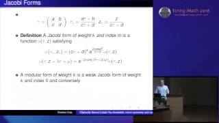 Sheldon Katz - Elliptically fibered Calabi-Yau threefolds: mirror symmetry and Jacobi forms