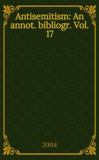 Antisemitism : An annot. bibliogr. / The Hebrew univ. of Jerusalem, the Vidal Sassoon intern. center for the study of antisemitism, the Felix Posen bibliogr. project on antisemitism (in coop. with the Jew. nat. a. univ. libr.); Ed. by Susan Sarah Cohen. Vol. 14: , 1998. - 2001. - XXIX, 519 с
