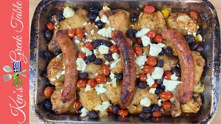 Easy Chicken & Sausage Tray Bake | Greek Style Chicken Recipe