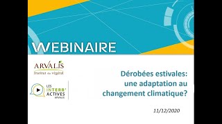 Webinaire "Dérobée estivale : une adaptation au changement climatique ?" du 11 décembre 2020. Les épisodes récurrents de sécheresse estivale sur ces ...