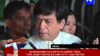 Sandiganbayan sets plunder trial for Janet Napoles and Atty. Gigi Reyes