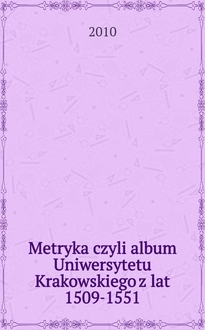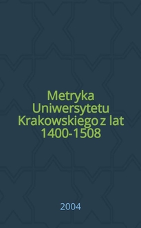 Metryka Uniwersytetu Krakowskiego z lat 1400-1508 = Metrica Univesitatis Cracoviensis a. 1400-1508 : Biblioteka Jagiellońska rkp. 258 / wyd. Antoni Gąsiorowski [et al.]. - Kraków : T-wo nauk. "Soc. Vistulana", 2004. - 25 см