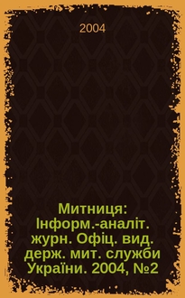 Митниця : Iнформ.-аналiт. журн. Офiц. вид. держ. мит. служби Украïни. 2004, №3(8)