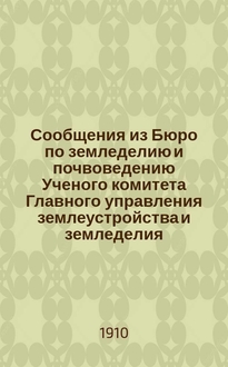 Сообщения из Бюро по земледелию и почвоведению Ученого комитета Главного управления землеустройства и земледелия. 7 : Распространение, применение и контроль минеральных удобрений в губерниях Псковской, Владимирской, Могилевской, Тульской и Калужской