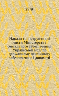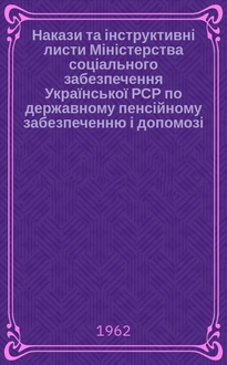 УРСР. Накази та інструктивні листи Міністерства соціального забезпечення Української РСР по державному пенсійному забезпеченню і допомозі / М-во соціального забезпечення УРСР. - Киïв, 1960-1973
