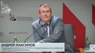 Председатель Комиссии ОП РФ по территориальному развитию и местному самоуправлению Андрей Максимов на пленарной сессии форума ...