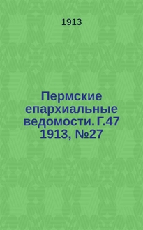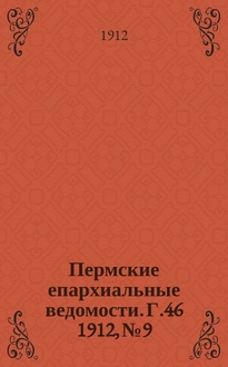 Пермские епархиальные ведомости. Г.51 1917, №7. Аннотация: Пермские епархиальные ведомости (на 1910 г. - Пермские Епархиальные Ведомости). Пермь: Типо-Лит. А.А. Плотникова, 1910. Г.52 1917, NoNo1-4 Аннотация: Пермский епарх. ведомост. 1910 г. N 1. Перм. епарх. вед. 1901 г. No 9. Пермских епарх. и епархиальных ведомостей с 1856 по 1911 гг., вып. I-VI, изд. 1-е. Пермь: Типогр.