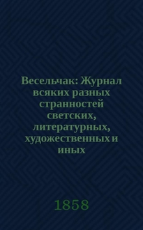 Весельчак : Журнал всяких разных странностей светских, литературных, художественных и иных. [Г.1], 1858, №50/51:. - 1858