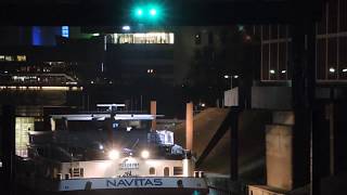 Binnenschiff Novitas Hubbrücke am Hafen Düsseldorf