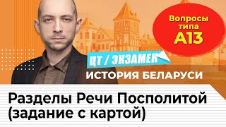 ЦТ, экзамен по истории Беларуси. Вопросы типа...А13. Разделы Речи Посполитой (задание с картой)