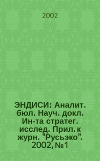 ЭНДИСИ : Аналит. бюл. Науч. докл. Ин-та стратег. исслед. Прил. к журн. "Русьэко". 2000, №1 : Проблема доверия в международных отношениях: теория и практика