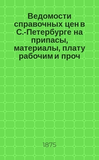Серии: ; Ведомости справочных цен в С.-Петербурге на припасы, материалы, плату рабочим и проч., издаваемые С.-Петербургскою городскою управою