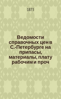 Серии: ; Ведомости справочных цен в С.-Петербурге на припасы, материалы, плату рабочим и проч., издаваемые С.-Петербургскою городскою управою