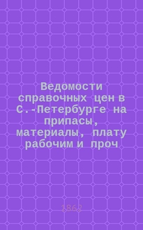 Серии: ; Ведомости справочных цен в С.-Петербурге на припасы, материалы, плату рабочим и проч., издаваемые С.-Петербургскою городскою управою