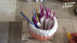 ВСЕ МОИ ПОМОЩНИКИ В ВЯЗАНИИ СПИЦЫ, КРЮЧКИ! ВЯЗАНЫЕ КОРЗИНЫ ИЗ ТРИКОТАЖА КРЮЧКОМ.