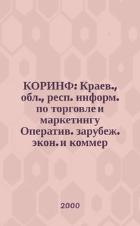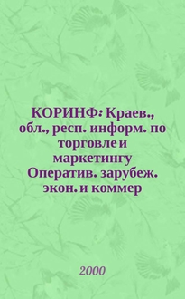 КОРИНФ : Краев., обл., респ. информ. по торговле и маркетингу : Оператив. зарубеж. экон. и коммер. экспресс-информ.. 2000, № 7 (559):. - 2000
