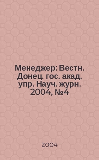 Менеджер : Вестн. Донец. гос. акад. упр. : Науч. журн.. 2007, № 3 (41):. - 2007