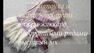 Вяжем жаккардовый шарф и шапку. жаккард поворотными рядами. вязание для детей. вязаная шапочка