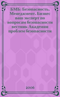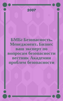 БМБ : Безопасность. Менеджмент. Бизнес ваш эксперт по вопросам безопасности вестник Академии проблем безопасности, обороны и правопорядка. 2008, № 1/2 (16/17)