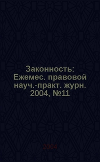 Законность : Ежемес. правовой науч.-практ. журн. / Учредители: Прокуратура Рос. Федерации, Труд. коллектив ред. журн. 2008, № 7 (885):. - 2008