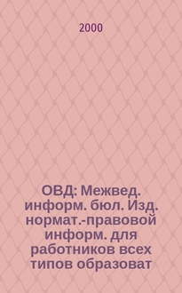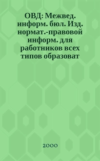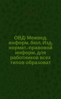 ОВД : Межвед. информ. бюл. : Изд. нормат.-правовой информ. для работников всех типов образоват. учреждений : Изд. ООО МИБ "Образование в док.". 2002, № 12 (145):. - 2002