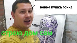 Дешёвка 25. Натянули потолки, установил ванну и входную дверь. Закупил материал.