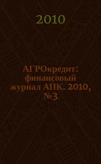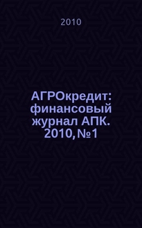 АГРОкредит : финансовый журнал АПК. 2009, № 11:. - 2009