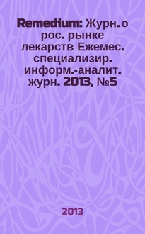 Remedium : Журн. о рос. рынке лекарств : Ежемес. специализир. информ.-аналит. журн. / Учредитель: Информ. фонд целевых прогр. ИТАР-ТАСС. 2010, № 5 (159):. - 2010