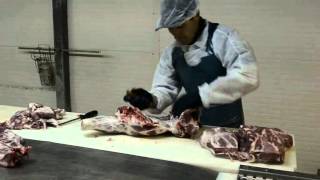 Интернет-магазин свежего фермерского мяса Агропрофи http://agroprofi.org/. Показан процесс ручной упаковки шеи для шашлыка.