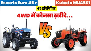 Kubota MU 4501 4WD vs Escorts Euro 45 Plus 4WD - Tractor Comparison, Tractor Price - Khetigaadi
