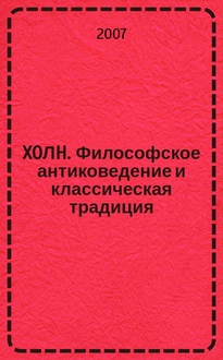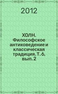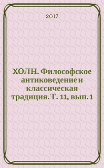 ΣXOЛH. Философское антиковедение и классическая традиция. Т. 4, вып. 2