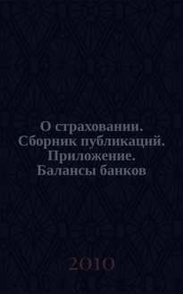 О страховании. Сборник публикаций. Приложение. Балансы банков : содействие прогрессу российского страхования. 2011, № 13-2-ББ (479) (05.07.11). Аннотация: первый выпуск (20.01.2011) составитель - бывший директор страхового агентства « Банк России» В.С. Анисимов ( г.