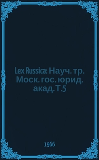 Lex Russica : Науч. тр. Моск. гос. юрид. акад. / Гос. образоват. учреждение высш. проф. образования Моск. гос. юрид. акад. Т. 70, № 3:. - 2011