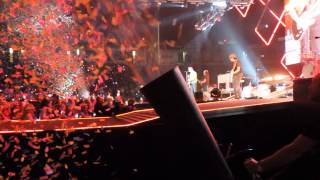 Keith Urban singing the last couple seconds of "Somebody Like You" with a confetti shower at the Bryce Jordan Center in PA.
