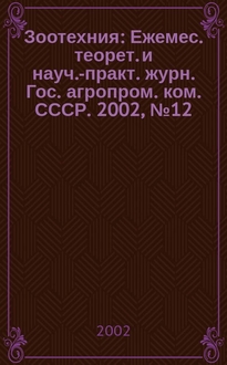 Зоотехния : Ежемес. теорет. и науч.-практ. журн. Гос. агропром. ком. СССР. 2001, № 9