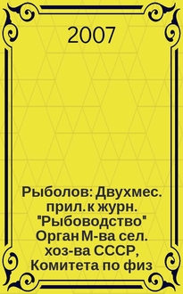Рыболов : Двухмес. прил. к журн. "Рыбоводство" Орган М-ва сел. хоз-ва СССР, Комитета по физ. культуре и спорту при Совете Министров СССР, Союза обществ охотников и рыболовов РСФСР. 2003, 1