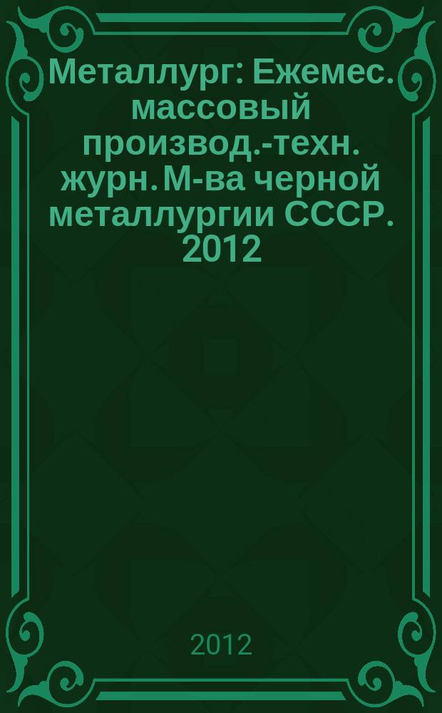 Металлург : Ежемес. массовый производ.-техн. журн. М-ва черной металлургии СССР. 2012, № 9:. - 2012