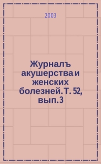 Журналъ акушерства и женских болезней / Органъ Акушерско-гинекологич. о-ва въ С.-Петербурге; Издаваемый подъ ред. А.Я.Крассовскаго, К.Ф.Славянскаго, И.И.Смольскаго. Т. 50, вып. 2:. - 2001