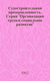 Судостроительная промышленность. Серия "Технология и организация производства судового машиностроения" : Науч.-техн. сб. В произведении раскрывается опыт организации производства на судостроительных заводах, пути снижения себестоимости продукции, повышения качества, внедрения автоматизированных систем управления, рассмотрены вопросы управления качеством продукции и др.