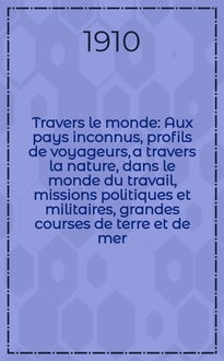 À Travers le monde : Aux pays inconnus, profils de voyageurs, a travers la nature, dans le monde du travail, missions politiques et militaires, grandes courses de terre et de mer, conseils aux voyageurs, excursions, parmi les races humaines, livres et cartes, bilan des exploration en cours, etc. N.S. Année11 1905, livr.28