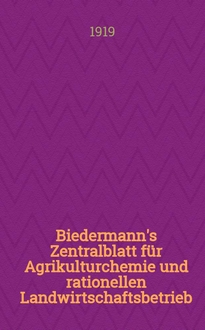 Серии: ; Biedermann's Zentralblatt für Agrikulturchemie und rationellen Landwirtschaftsbetrieb