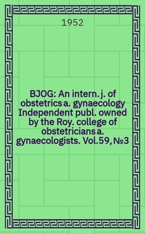 BJOG : An intern. j. of obstetrics a. gynaecology : [Independent publ. owned by the Roy. college of obstetricians a. gynaecologists]. Vol.77, Указатель:. - 1970
