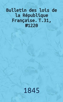 Bulletin des lois de la République Française. T.19, Partie suppl. №813. Аннотация: