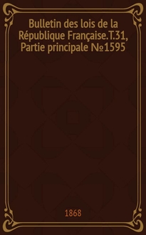 Bulletin des lois de la République Française. T.31, Partie suppl. №1730
