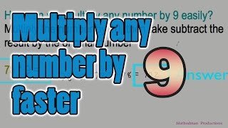 This is a multiplication trick to compute the product of 9 and any number. This works for decimals and big numbers. To multiply by nine fast: 1) First multiply your ...