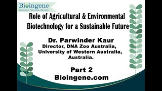 Webinar on the Topic ”Role of Agricultural & Environmental Biotechnology for a sustainable future” by Dr. Parwinder Kaur, Director, DNA Zoo Australia, UWA ...