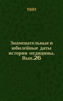 Знаменательные и юбилейные даты истории медицины и здравоохранения... Вып. 9 : ...2002 года. Аннотация: Календарь знаменательных и юбилейных дат истории медицины и медицинского страхования. Вып. 9 Дата выпуска: 2002 г. Издательство "Медицина" Страниц: 112 Формат: 60x90/16 Тираж: 1000 экз. Цена договорная Рецензенты: д.м.н. В.М. Боголюбов, д.м..н. А.В. Важенин, д.б.н., профессор Л.Н. Мазаева Ответственный за выпуск: д.и.н. Г.А. Рапопорт Редактор тома: Т.С. Куценко Подписано в печать 03.03.02. Отпечатано в типографии издательства "Медицина". 119285, Москва, ул. Пудовкина, 4