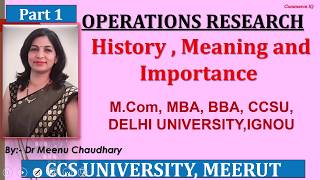 OPERATIONS RESEARCH|Introduction,History, Meaning, Scope of Operation Research| Dr. Meenu Chaudhary|
